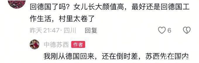 尽管小雪的孩子的父亲已经离她而去,小雪仍然决定与孩子共度余生。在她之前在德国的日子里,她也经历了新的感情旅程,但遗憾的是,她都未能走到终点。那个人是意大利人,并且有一个孩子,小雪在那时也与大家分享了各自的生活状况。小雪以前的那位意大利男友因此,很多人坦率地表示,如果小雪能够带着孩子返回湖北居住,那将是一个更好的选择。毕竟,在湖北她有自己的住所和家人,如果需要,家人也会伸出援手,互相照应。在那个时刻,小雪也倾听了众人的意见,并与苏西一同返回湖北的故乡,与她的父母共同生活。根据小雪当时分享的视频内容,与父母同住后,小雪明显感到了生活的轻松。不仅孩子得到了他人的照料,日常生活中也有人协助烹饪等,小雪只需全心全意地投入工作即可。