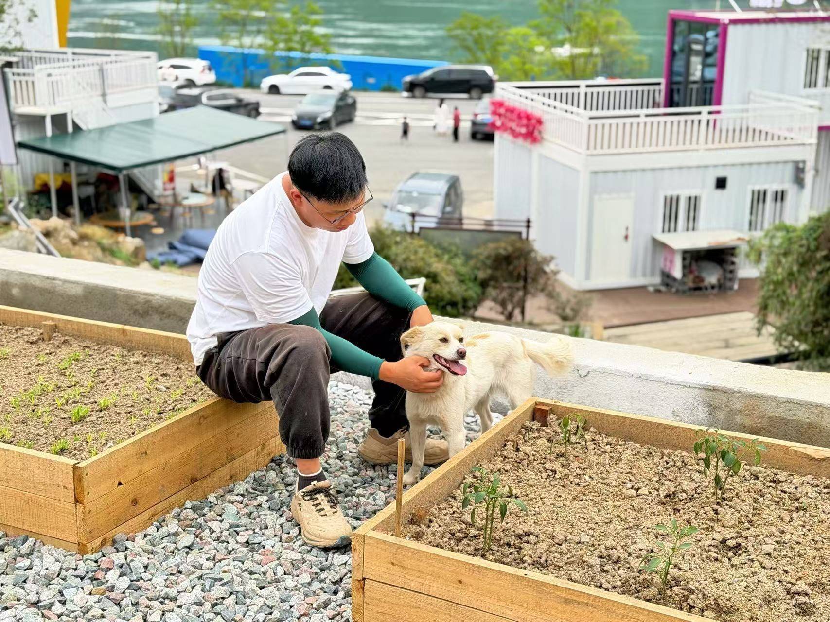 2024年中秋节,周云刚决定租下莲沱畔的小院后不久,便偶遇了这只小狗,恰逢佳节团圆,便为它取名月饼。如今月饼早已成为小院专属的“安保队队长”,整日在庭院里蹦跳玩耍,陪着周云打理小院、迎接往来客人,成了江畔小院里不可或缺的暖心存在。